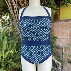 ONE Piece Swimsuit Modest Halter Blue Plus Size 22