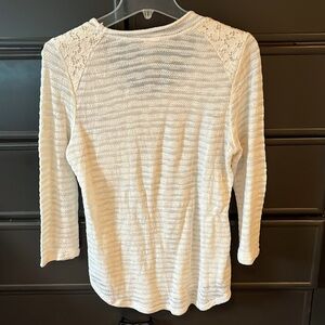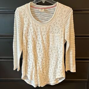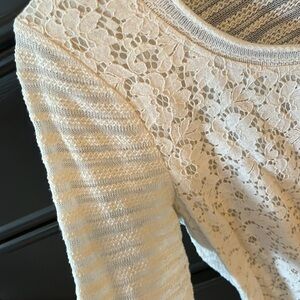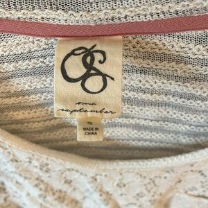 GUC ONE SEPTEMBER TOP . Floral lacy design on front . Arms and back are a light knit material Ptp 20 inches (Cb)