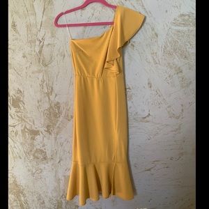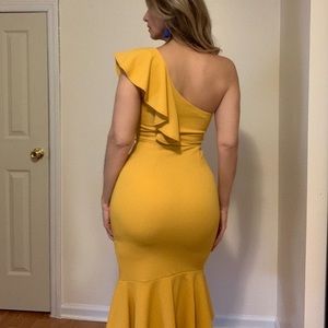 ONE SHOULDER RUFFLE MIDI DRESS