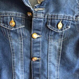 ONE STEP UP Crystal Gold Button Denim Jean Jacket Size 7/8