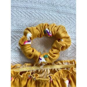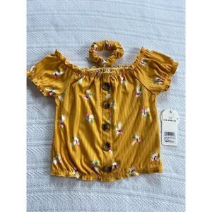 ONE STEP UP Girl’s Small (4) Mustard/Unicorn Top with Matching Scrunchie