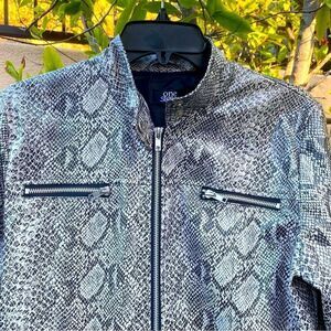 🧥ONE STEP UP BLACK/WHITE ANIMAL PRINT FAUX LEATHER JACKET GL SZ L or W XS ECU