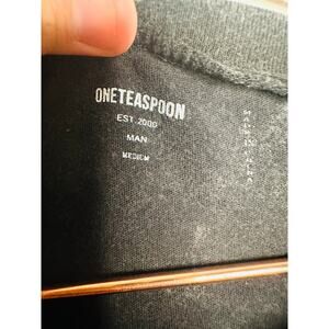 ONE TEASPOON Acid Washed Distressed Black Short Sleeve Tee in size Medium is a cool, edgy staple with a worn-in feel. Crafted from soft cotton, this tee features an acid-washed black finish for a vintage-inspired look, with distressed details that add character and attitude. The classic crew neckline and relaxed fit make it comfortable and versatile, perfect for layering or wearing solo. Style it with jeans, shorts, or a leather jacket for an effortlessly chic, rock-inspired outfit.