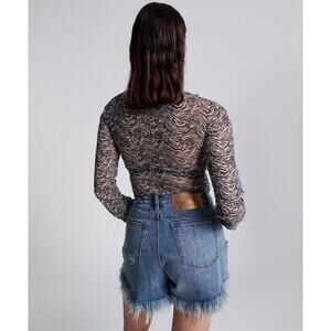 ONE TEASPOON Black White Interfere Ruffle Long Sleeve Party Top NWT Size Small