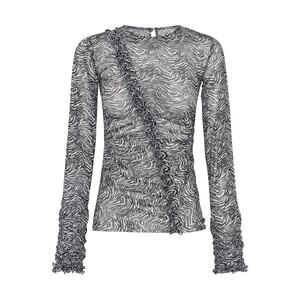 ONE TEASPOON black and white party top combines playful ruffles with a trendy, modern look. The top is crafted from a lightweight, high-quality fabric that drapes elegantly, making it comfortable yet stylish. Featuring a flattering crew neckline, it has a fitted silhouette through the torso with long sleeves that add a touch of sophistication. The standout ruffle detail cascades from the shoulder down the sleeves, adding a feminine flair to the design. Perfect for a night out or special occasions, this versatile top pairs beautifully with high-waisted jeans or a sleek skirt.