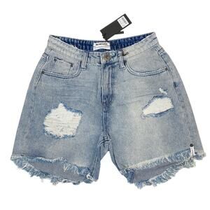 One Teaspoon denim shorts, high rise distressed shorts, festival denim, vintage wash jean shorts, raw hem cutoff denim, casual edgy summer staple, cool-girl streetwear style, trending Y2K denim short, minimalist off-duty look, coastal cowgirl meets rocker chic, 90s revival fit, timeless denim essential.