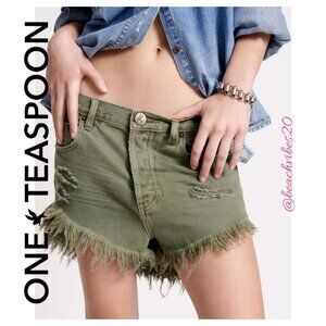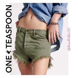 Brand new with tags ONE TEASPOON Outlaws Low Waist Mid Length Denim Shorts in the color Military Khaki size 30. SOLD OUT ON ONE TEASPOON IN THIS SIZE!
