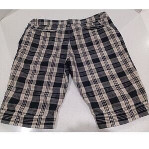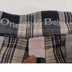 ONE TUFF BABE Bermuda shorts for women in size 9/10. These stylish shorts feature a classic Bermuda cut and a unique black and beige color combination. Perfect for casual outings or dressing up. Add a touch of effortless cool to your wardrobe with these must-have shorts!