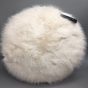 ONE Tahari Faux Fur Accent Pillow White Sand 16" Round Holiday Christmas Decor