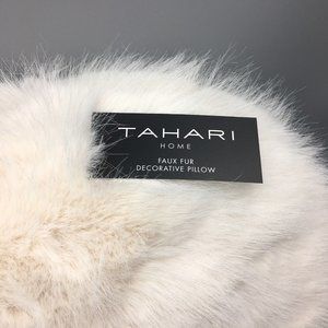 ONE Tahari Faux Fur Accent Pillow White Sand 16" Round Holiday Christmas Decor