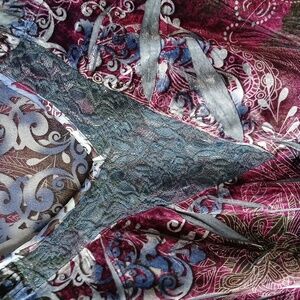 ONE WORLD 3/4 Sleeve Velvet Top Lace Womens Size Large Boho Whimsygoth Casual