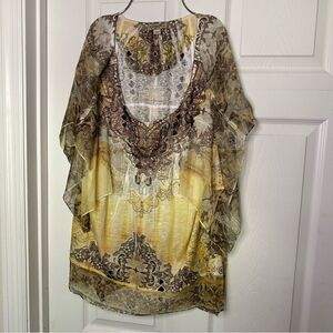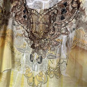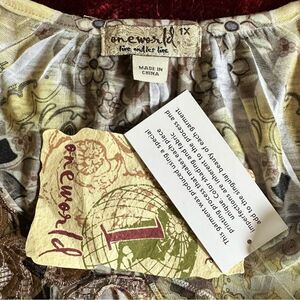 ONE WORLD Floral Sheer Layered Top in Yellow and Brown 1X NWT