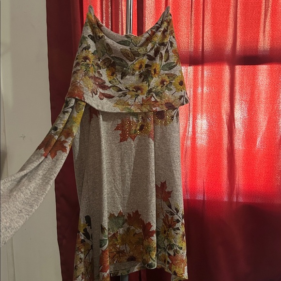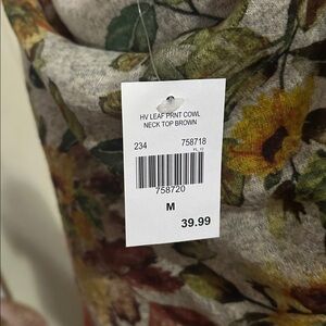 Stylish cowl neck top with a leaf pattern. Ideal for a fall chick look.
