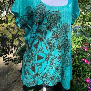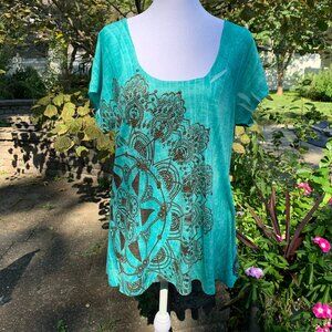 ONE WORLD Medallion Embellished Boho Gypsy Top