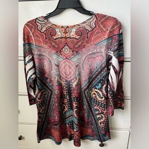 ONE WORLD Pink Red Graphic 3/4 Sleeve Blouse
