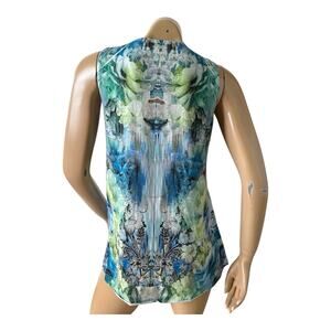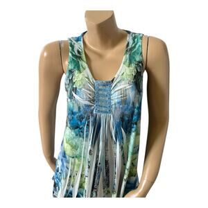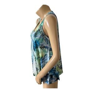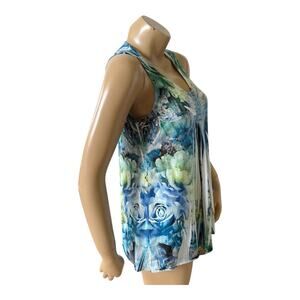 ONE WORLD Womens Size Medium Sleeveless Embellished Sublimated Tank Top Shirt