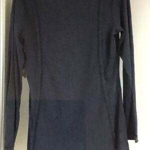 This top by ONE WORLD is gorgeous, soft and comfy! It is done in a soft knit polyester/rayon/Spandex mix. It has a high/low hem styling. The front is Embellished in a stunning swirl pattern and sparkles with blue sequins. It has long sleeves and is brand new with its tags still attached. From the top of the shoulder to the bottom front hem measures 25” and from armpit to armpit across is 19”. The fabric has quite a bit of stretch and it is size Small.