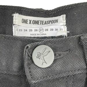 ONE X ONE TEASPOON JUNKYARD LOW RISE BLACK DENIM MINI SKIRT SIZE 27