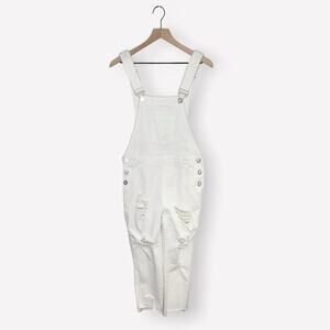These white, distressed, denim overalls are to die for this spring. The shredding throughout and high-rise waist make them a perfect pick.