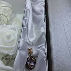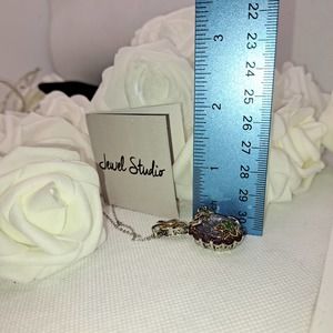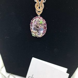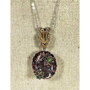 One of my FAVORITE designers! REAL Amethyst, garnet, emerald with 925 sterling and 14 K Gold pendant on a fine 19" long sterling silver chain, comes with box and paperwork. Beautify large and thick silver pendant to make a statement. The colors are amazing and the attention to detail are exquisite. This is a 1-inch pendant that will turn heads and is fabulous! NEW with tags and satin lined box plus original Jewel Studio box with paperwork is included and ready for gifting!