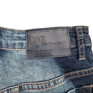 ONE x One Teaspoon Denim Shorts Womens Harlets High Rise Twisted Cuff Hem Sz 24