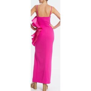 ONE33 SOCIAL Mercer Spaghetti Strap Ruffled Stretch Crepe Maxi Dress size 0 NWT Excellent condition. New with tags. The Mercer is a spaghetti-strap maxi dress, perfect for any warm-weather occasion. It has a cascading organza ruffle down the side with asymmetrical pleated tiers. This hot pink gown has a slit on the left side keeping you sexy and cool all summer long. Stretch crepe gown with spaghetti straps and a pleated taffeta ruffle. 95% Polyester | 5% Spandex Sweetheart neckline Spaghetti straps Sheath silhouette Column gown Ruffle on left side Hem lands ankle to floor length Long hem slit on side Center back hidden zipper with hook-and-eye closure Lined Hand Wash Cold Water | Do Not Bleach | Dry Clean Lay Flat To Dry | Iron Inside Out As Need Pit to pit 16” Length from armpit to hem 51”