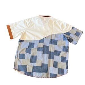 ONE432 Men's Short Sleeve Button Down Shirt Off White Blue Size XL