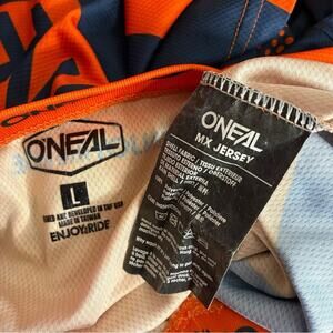 O'NEAL element racewear pull on, v-neck cycling sport jersey in blue, orange & yellow.