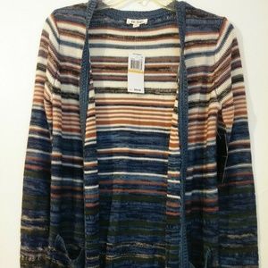 OneHart multicolor open front long sleeve front pockets sweater wrap
