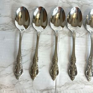 all crafted from durable and stylish stainless steel. The silver color and glossy finish make this set a timeless addition to any table setting. The Baroque/Rococo style and Michelangelo handle pattern add a touch of sophistication to your dining experience. This set is perfect for any occasion, from casual family dinners to formal events. Made in the United States with the finest materials