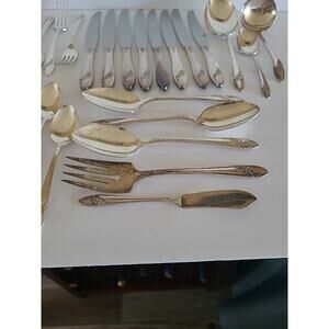 ONEIDA SILVER 34pc -Serves 8 - Queen Bess II Tudor Plated 1946
