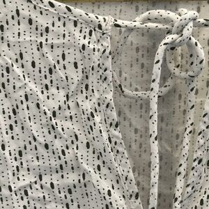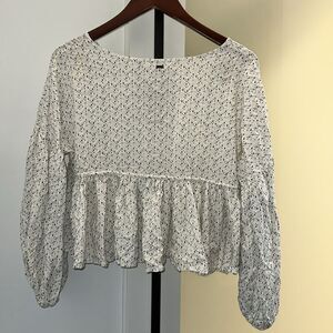 Comfortable and flowy woven long sleeve top that features a front drawstring detail, allover floral print and skimmer length fit.