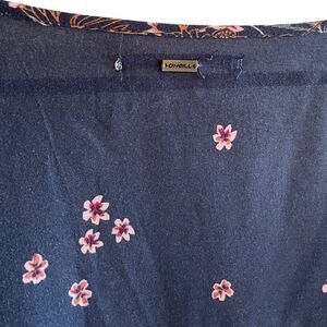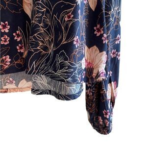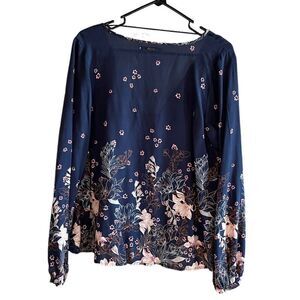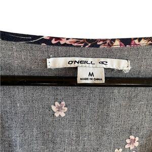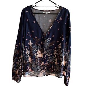 O'NEILL Floral Tie Front Long Sleeve Blouse Navy Blue Size Medium