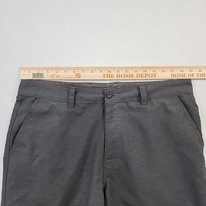 O'Neill Hybrid Shorts Men's size 38 Grey Heather 10" inseam Cotton Blend Stretch These Bermuda-style shorts feature a flat front and a 10" inseam, which makes them perfect for summer, fall and spring. The shorts are made of a comfortable cotton blend fabric with a medium wash and stretchy features. The gray heather color and nautical, outdoor and sports theme make them the ideal choice for travel, workwear, or casual occasions. The shorts have a button closure and slash pockets with accents of the brand's logo.