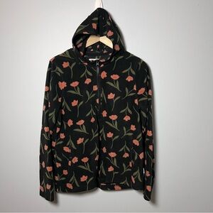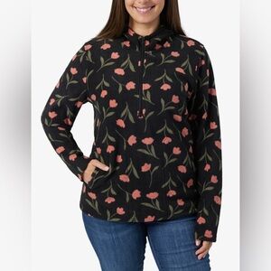O’NEILL Josie Half-zip Hoodie Women’s M Black Cozy Fleece Floral Print Pockets