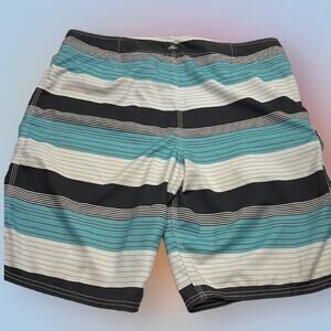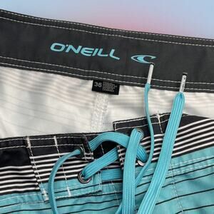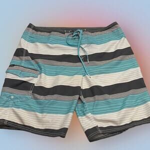 O’NEILL Men’s 36 Striped Board Shorts Blue Gray Black White