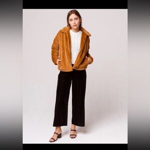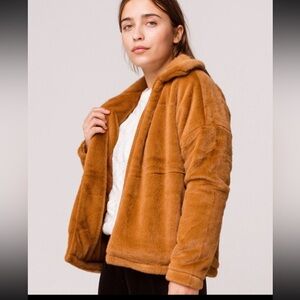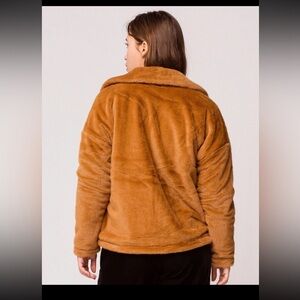 O'NEILL Merina Womens Faux Fur Jacket Peacoat Caramel Color Sz.L Oversized EUC