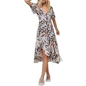 O'NEILL - Women's Floral Carina White High Lo Midi Flutter Sleeve Dress Small