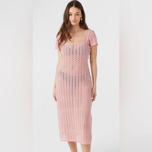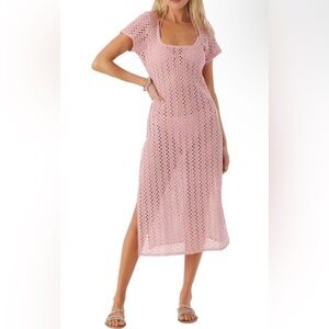 O’NEILL Womens Pink Dress Nina Midi Crochet Lace Cover Up Beach