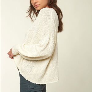 A sweater weather favorite. This is a slouchy fit pullover sweater that has a ribbed collar and sleeves.