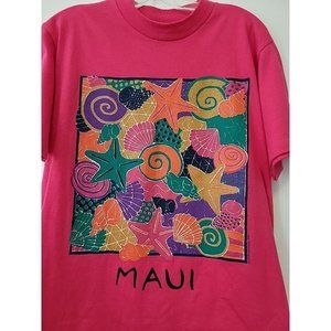 Oneita Power-T Vintage Single Stich Maui Starfish Seashells Pink Medium. Like new condition. Chest measures 40" Length 28".