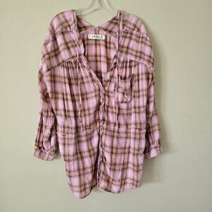 ONE OF THE BOYS PLAID TUNIC SHIRT IN IVORY COMBO WE THE FREE Size M