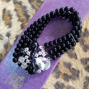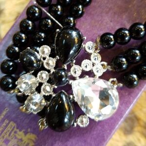 BEAUTIFUL BLACK BEADS AND CRYSTALS BRACELET GORGEOUS VINTAGE PIECE!!!