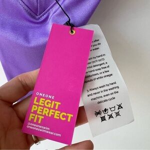 NWT Famous OneOne Jesse bikini bottom in purple satin feel fabric color. This bikini bottom has skinny cheeky cover, super soft and velvet-feel fabric.