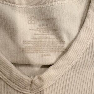 Stylish ribbed crop top. V-neck design. Soft and comfortable fabric.