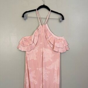 ONETHELAND Dress Womens L Off Shoulder Halter Strap Maxi Floral Lined Pink