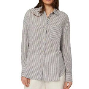 ONIA Air Linen Striped Long-Sleeve Boyfriend Shirt, Deep Navy Blue/White