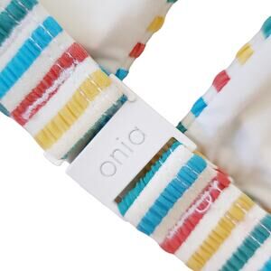 ONIA Danni Seersucker striped triangle beach bikini top in multi Size M NEW