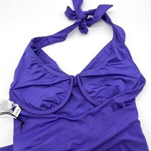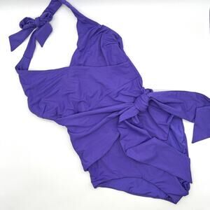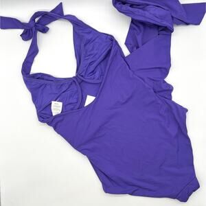 ONIA Elena One Piece Swimsuit Womens Small Purple Halter Wrap Waist Tie NEW