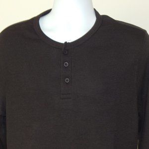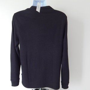 ONIA Henley Waffle Cotton Textured Knit Long Slv Deep Navy Polo Shirt Large NWT